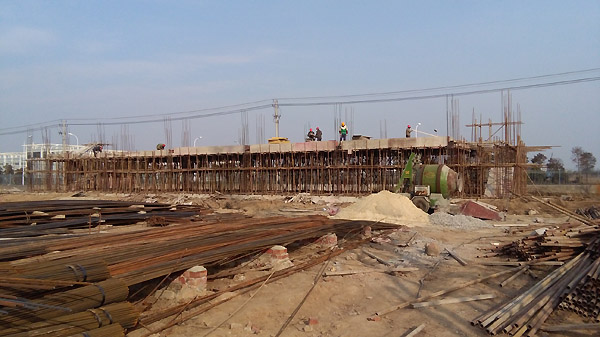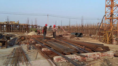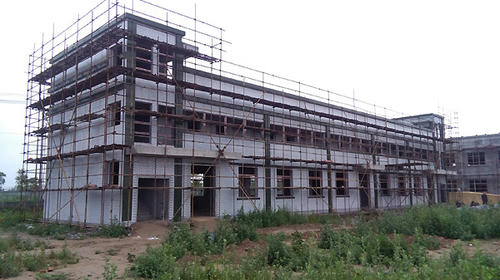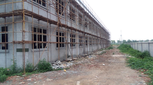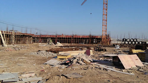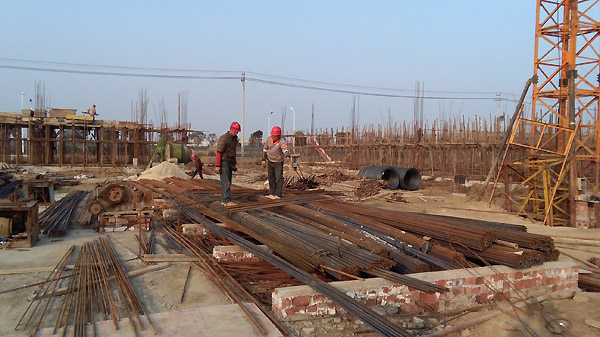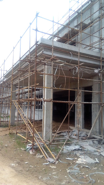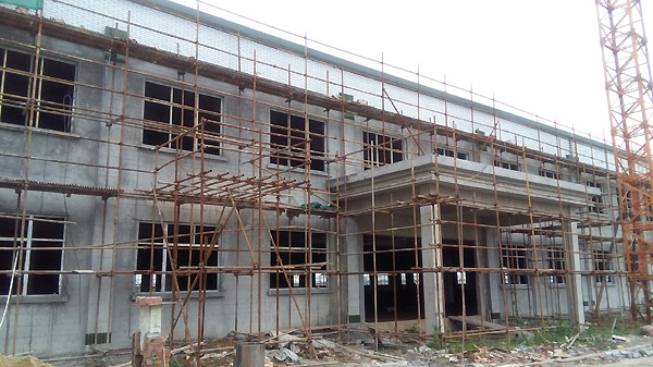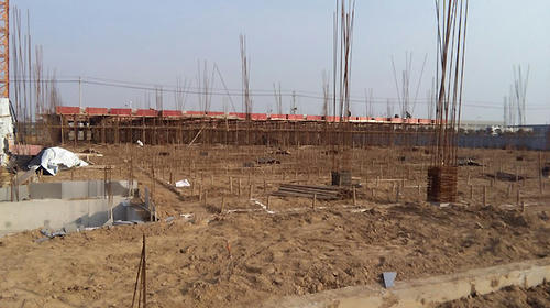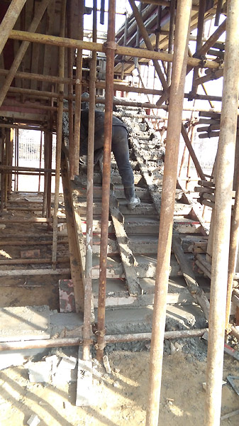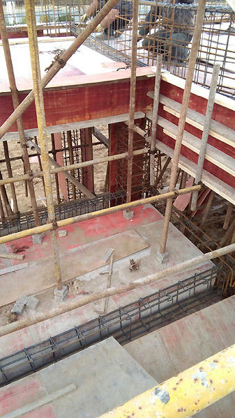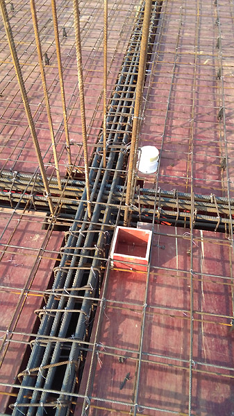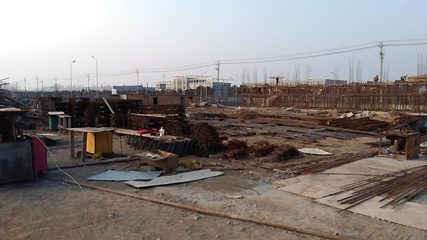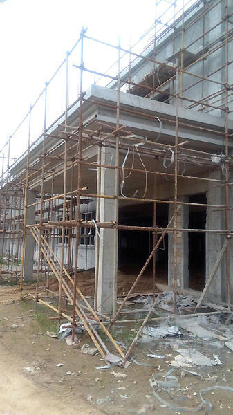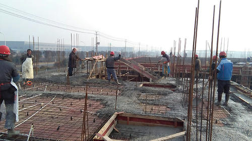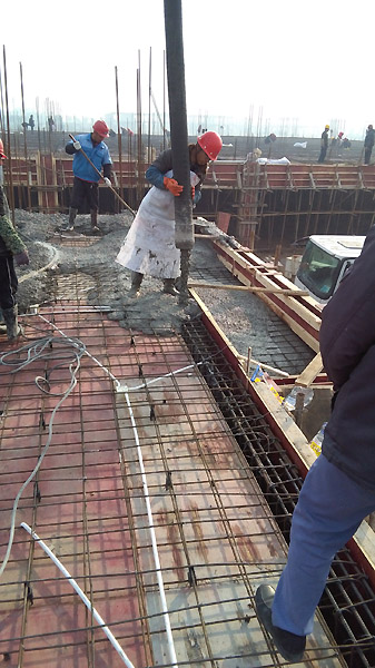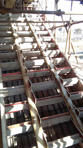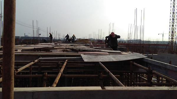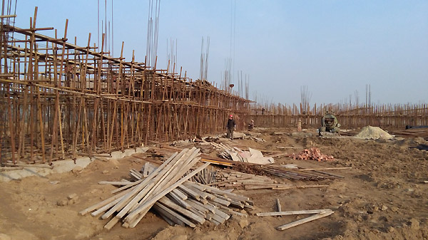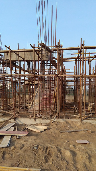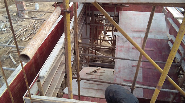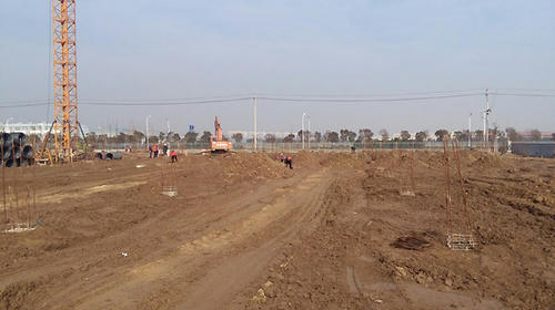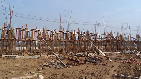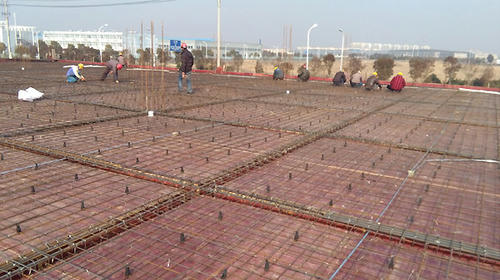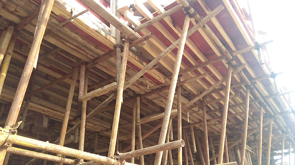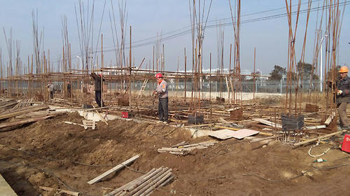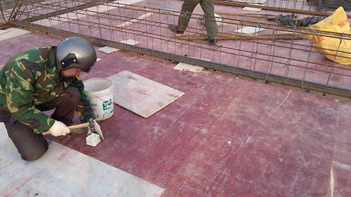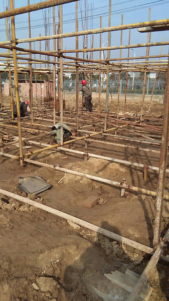 地面未先灌水夯實,直接以鐵管打樁替代支撐。