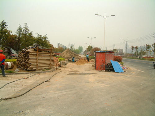 門口有政府單位在挖地埋排水管,但不妨礙出入。