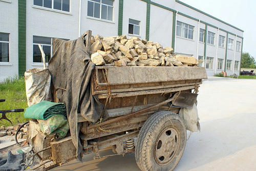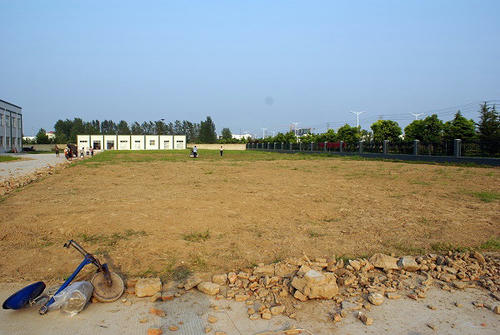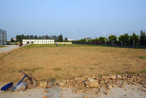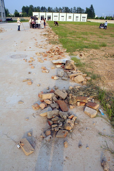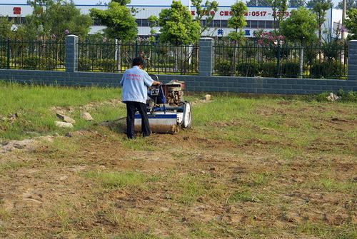 ▼ 總算是可以開始找人來撿石頭磚塊了,然後再將地面用拖拉機整平。