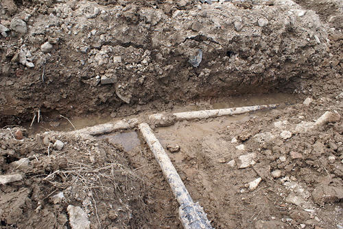 ▼ 我想把進水管橫過道路的地方乾脆搞成明溝,往後維修就不麻煩了。