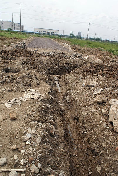 ▼ 道路剛好跨到進水管,而且其中有個三通還在路中央,挖地基的時候又給搞破全廠停了兩天水。