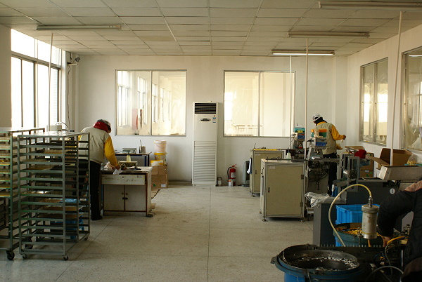 灌膠區隔完間後,基本上除了首站[捲繞]跟尾站[測試]外,中間製程的機台都擠進這個房間裡了。
