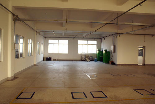 原本中段眾機台的位置只留下兩台烤箱沒進去(也沒位置了),地板標示線還留著,有一天還要搬回原位的。