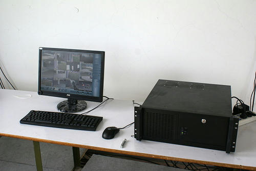 ▼ 規劃主機放在二號崗(暫放,尚未隔間保護主機),廠內外目前裝了十五個攝像頭,未來想增加也沒問題,再接上網路就可以網上檢視了。