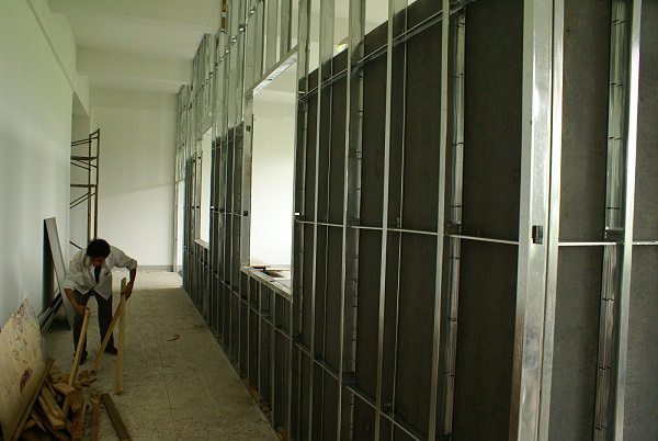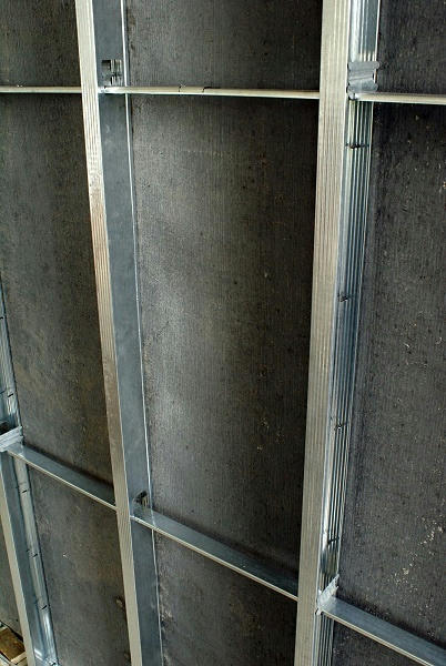▼ 是以水泥隔板夾輕鋼架結構,先前有隔一小面牆測試,強度還行。