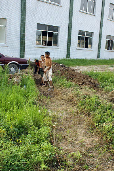 ▼ 工人正在挖電纜溝。