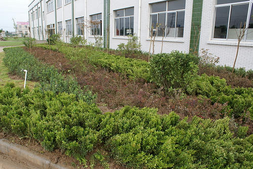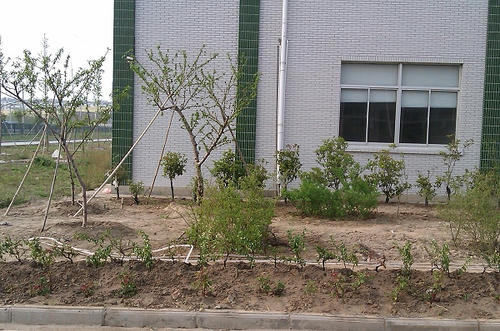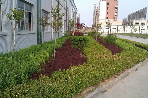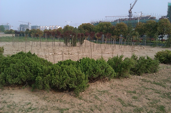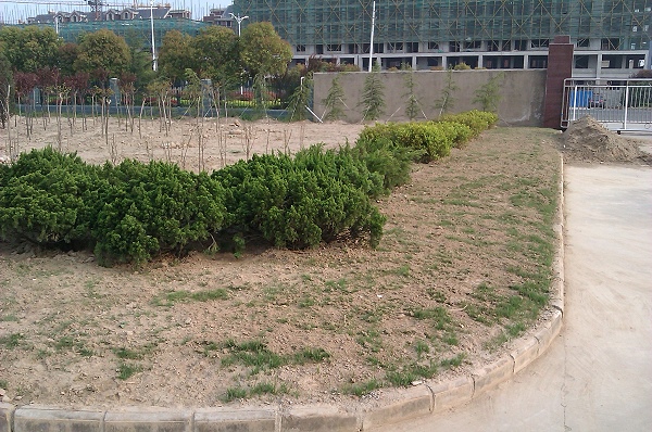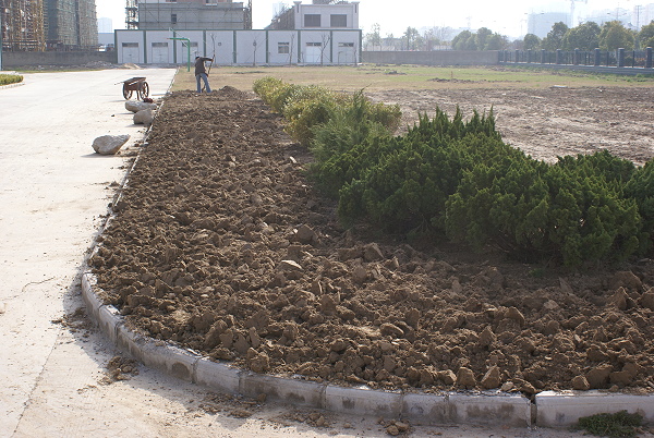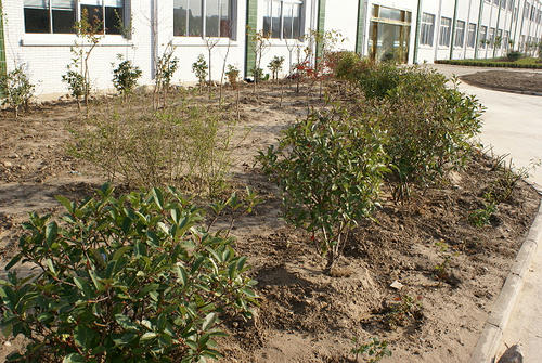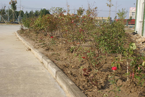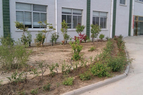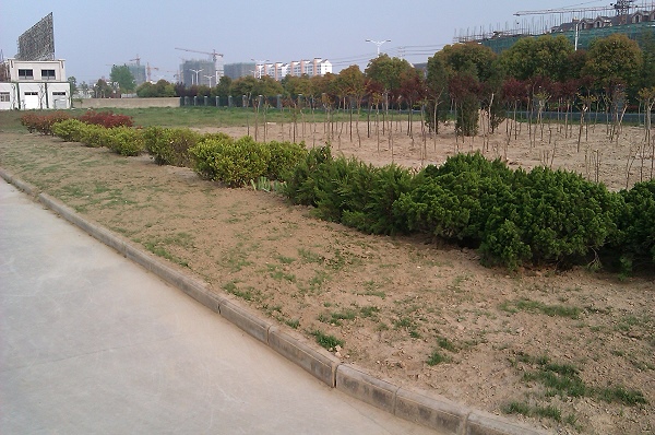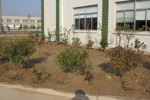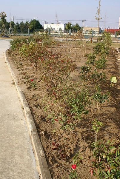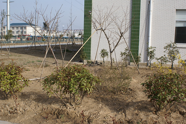 原來南邊綠化帶靠圍牆的桂花&紅葉石楠種植後生長不良,且距離太遠看不到效果,將存活株全數移植過來,另外西側道路兩旁的月季(玫瑰)及其他處的連翹、紅楓、小葉女真等也是一樣原因。這樣集中後效果較明顯,土質也較好。