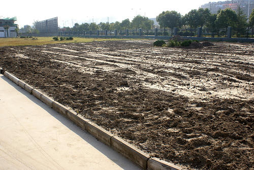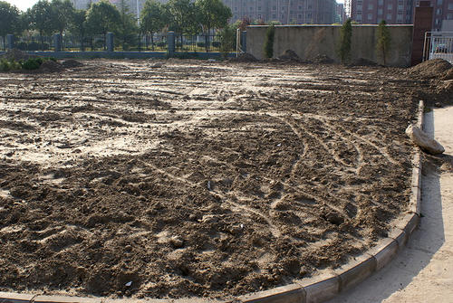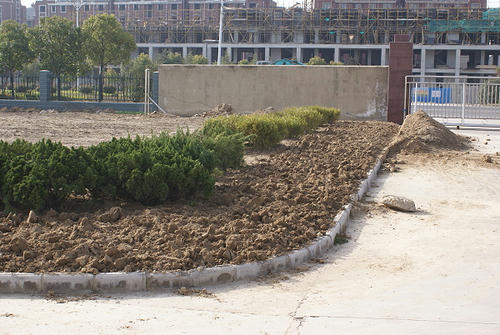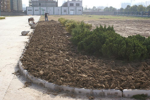 事先把原本栽植的樹苗先移走,然後開始回填。