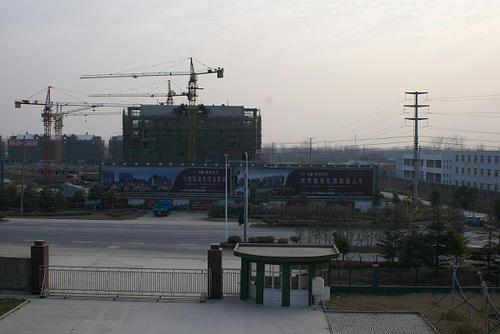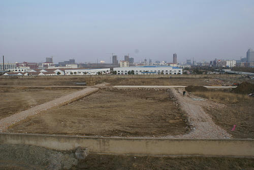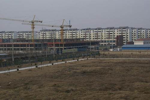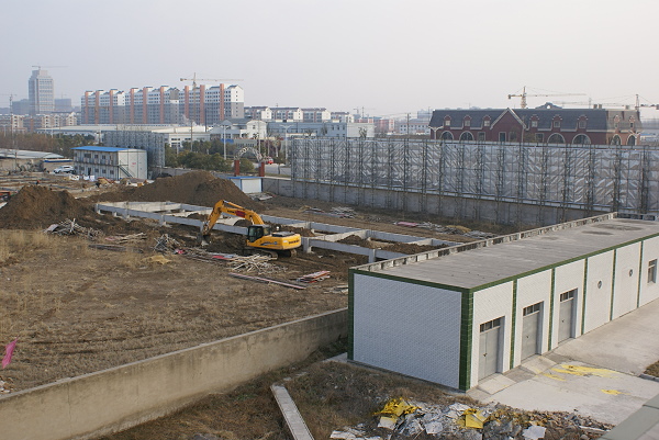 北邊是工人宿舍,中間的釘子戶還是沒搬走...
