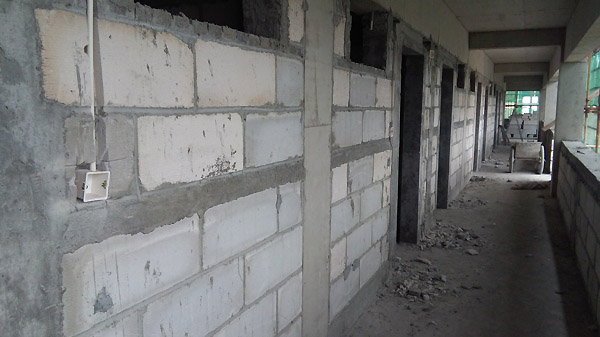 綜合樓線管預埋、廚房食堂排水溝砌築、北半邊廠房二層樓板完成