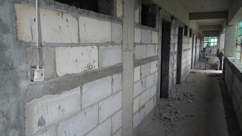 北半邊廠房二層模板搭建、一層牆體砌築>>