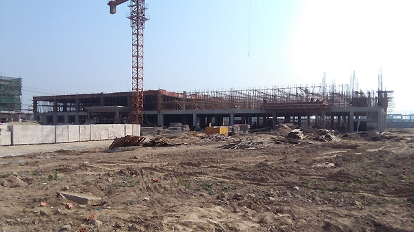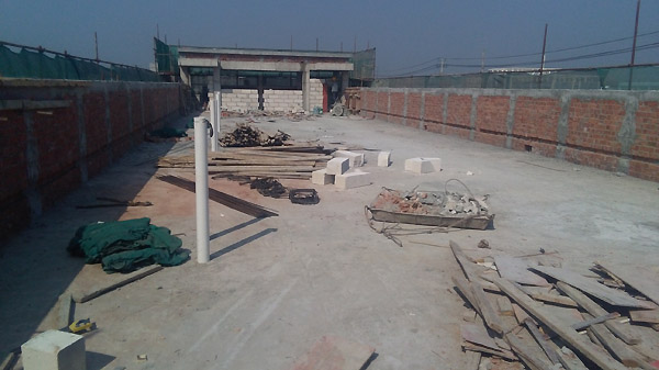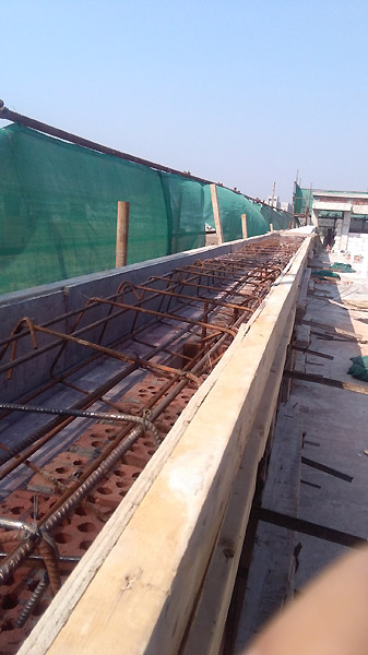 <<北半邊廠房樓頂女兒牆砌築、南半邊廠房二層鋼筋綁扎
